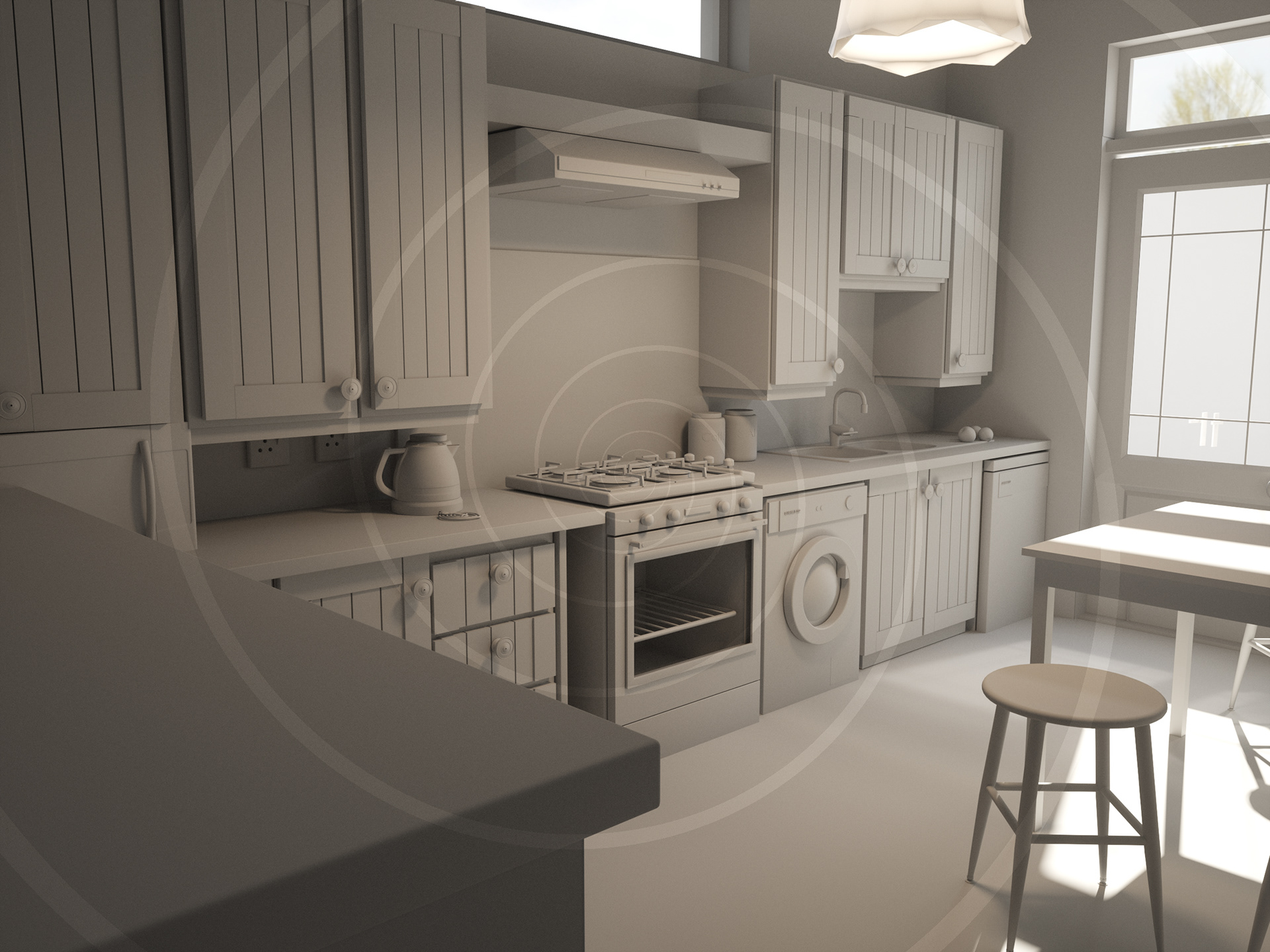 Kitchen interior design render, for a residence in Cape Town, South Africa. My first Attempt at using Fstorm Renderer