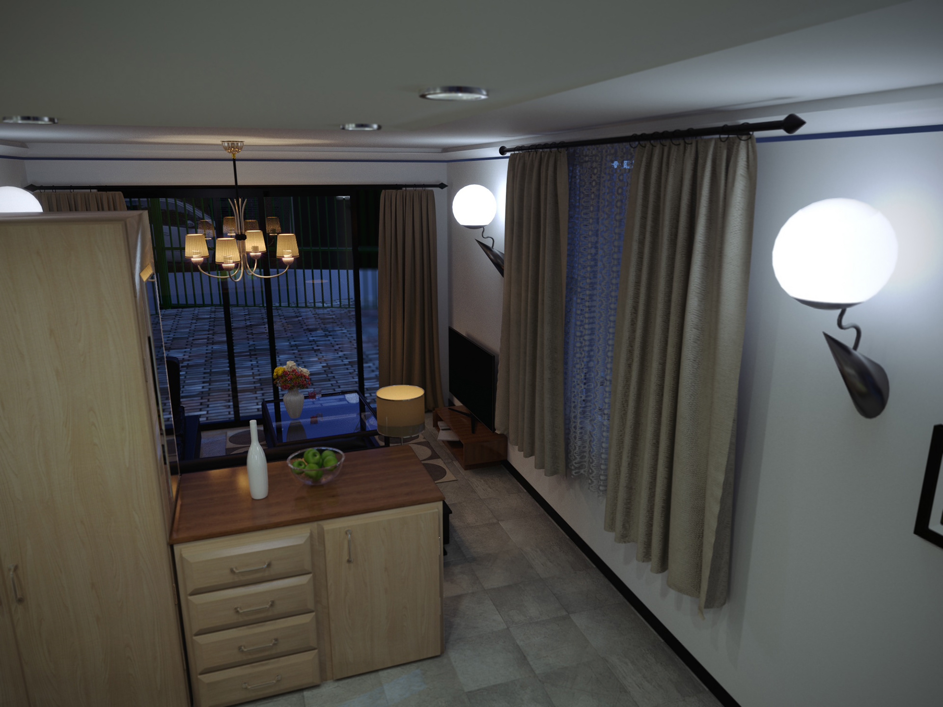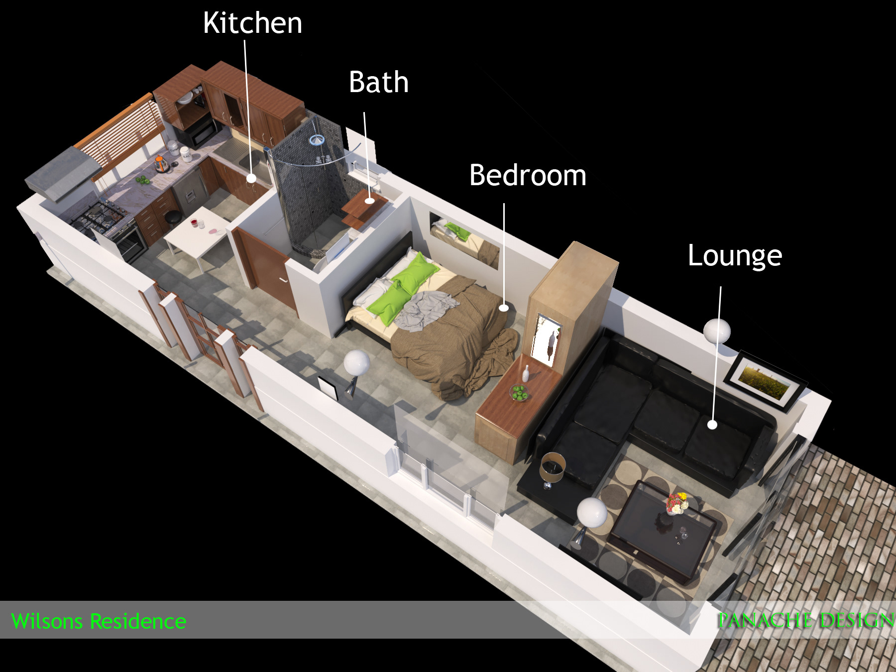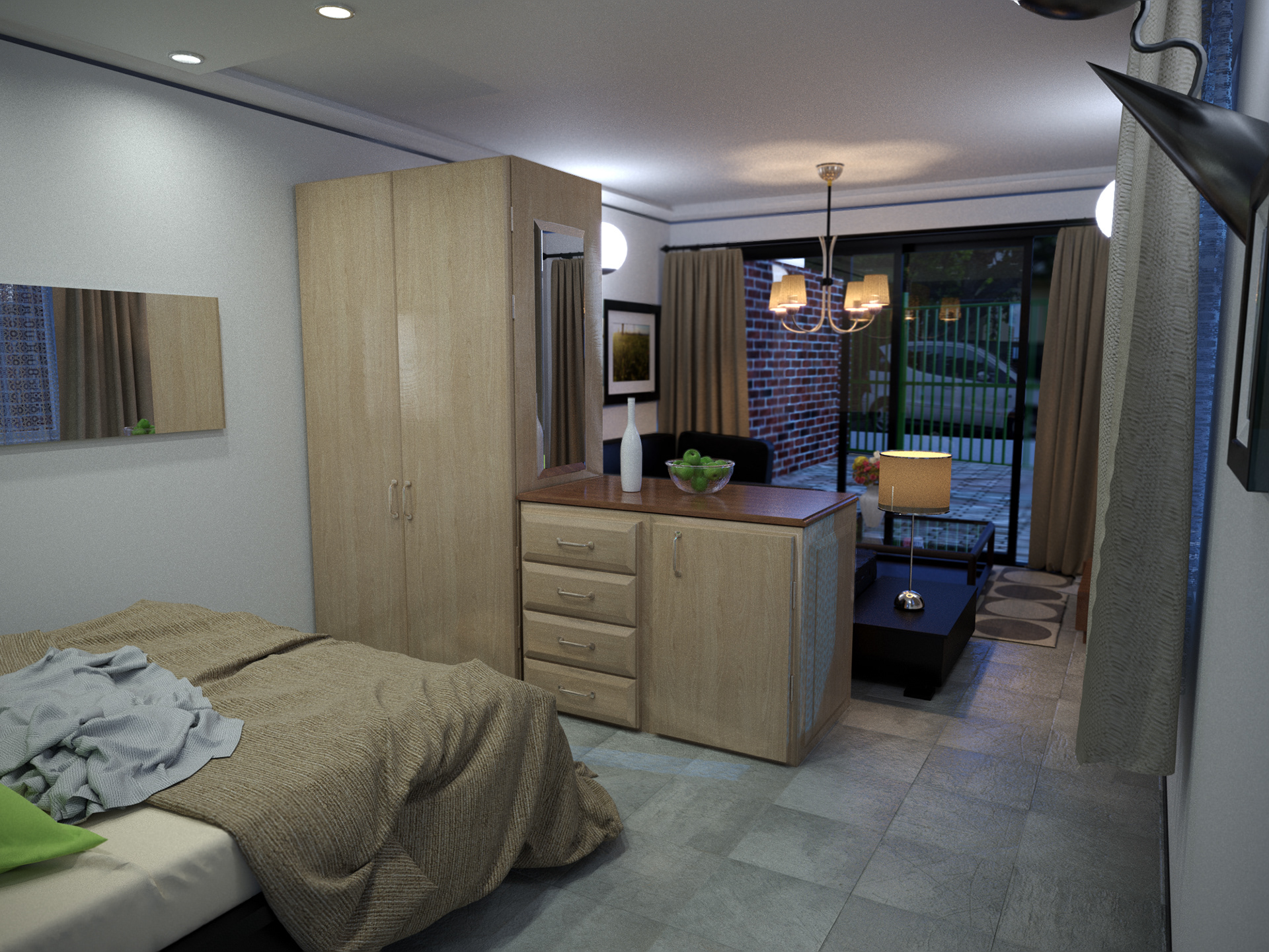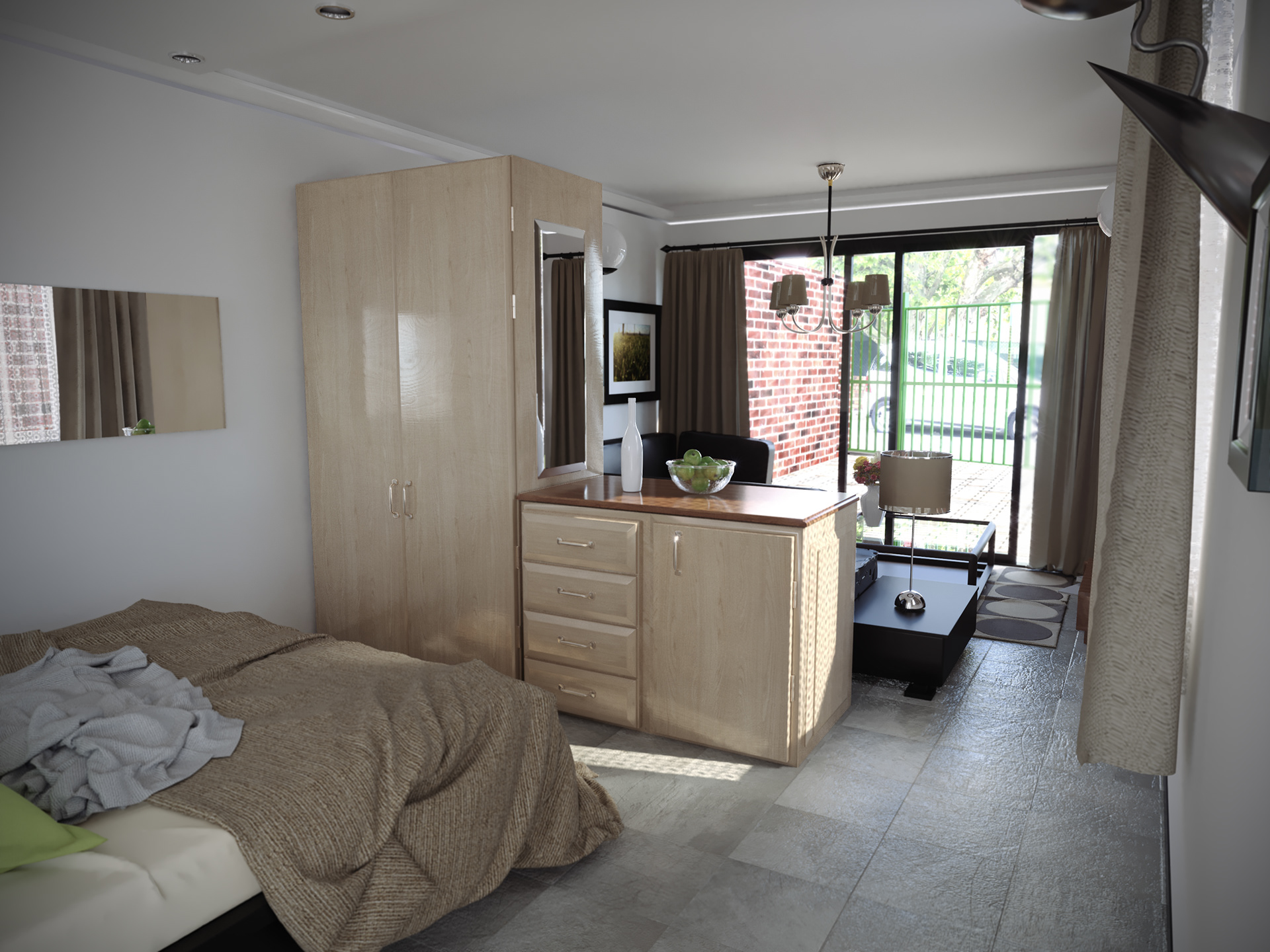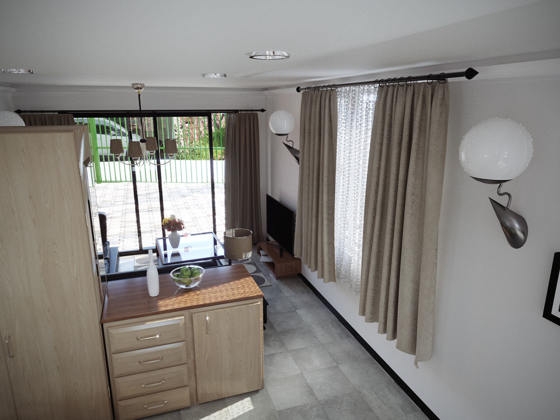 Architectural Interior Visualisations of an ongoing project to convert a garage space to a small living quarters at a residence in Cape Town, South Africa.
